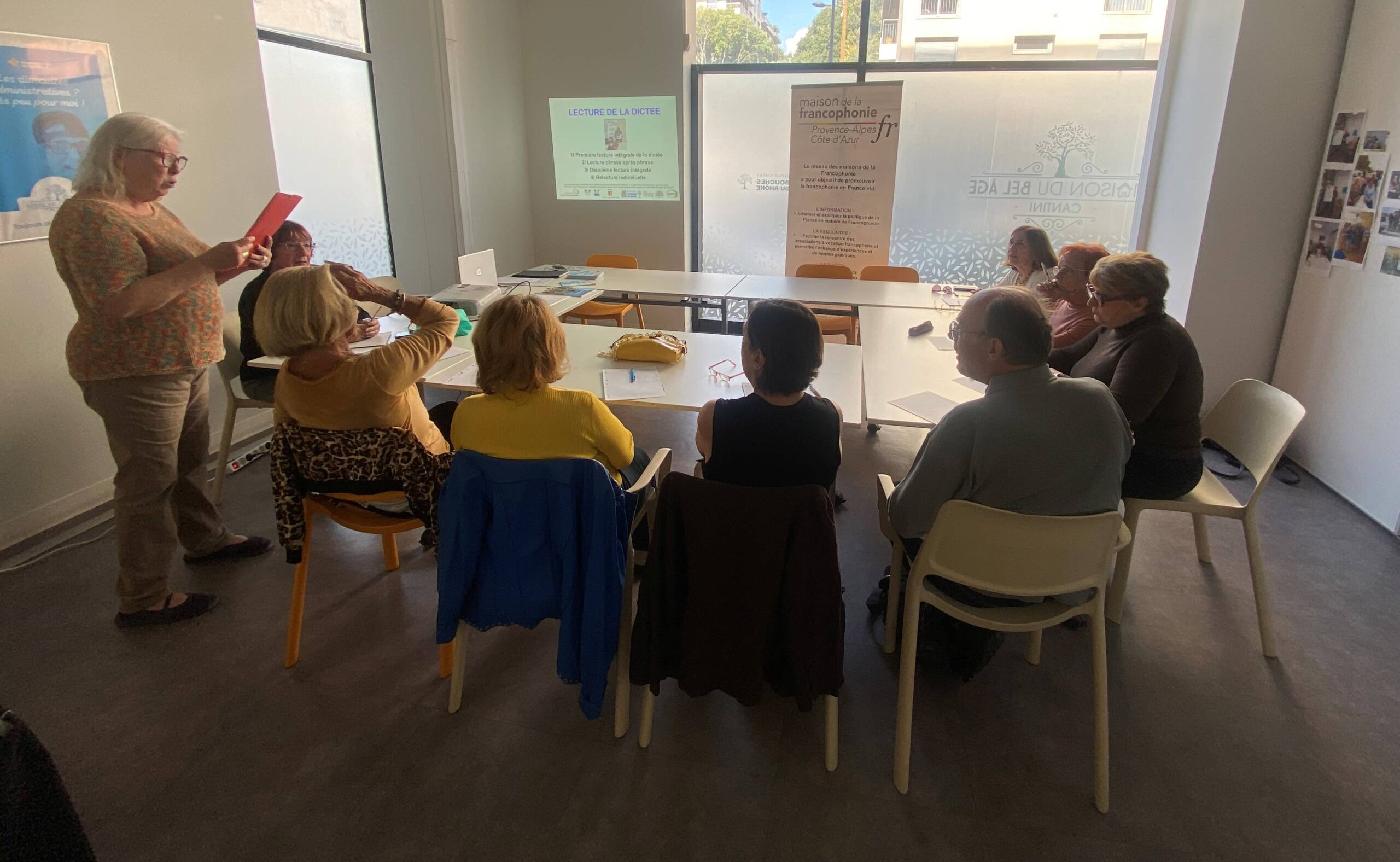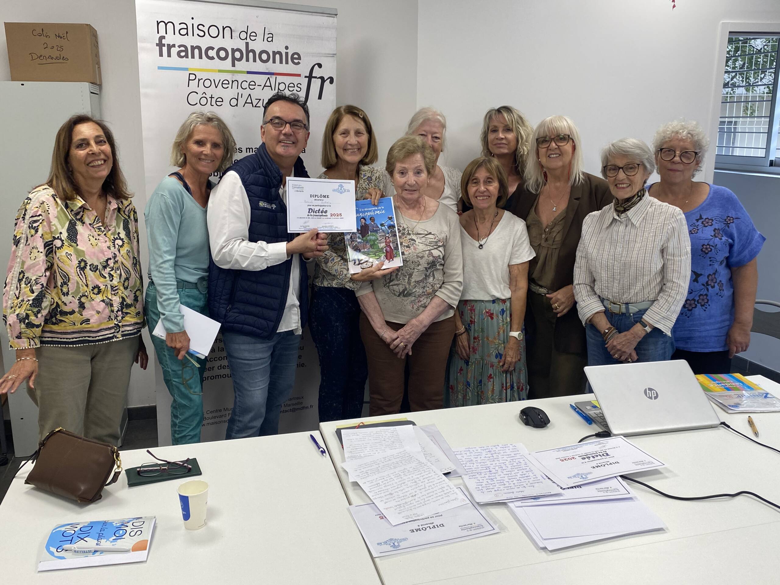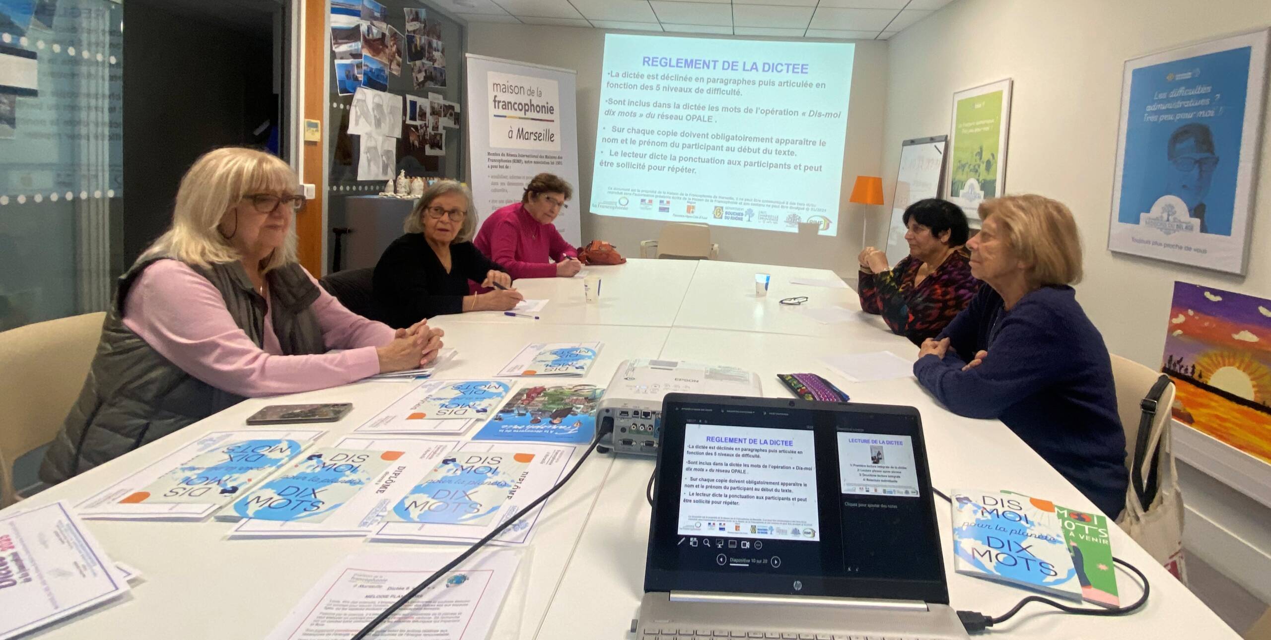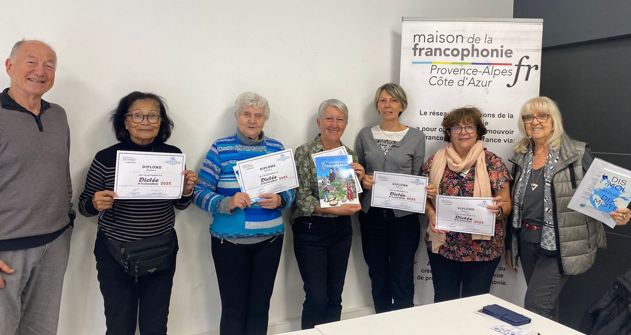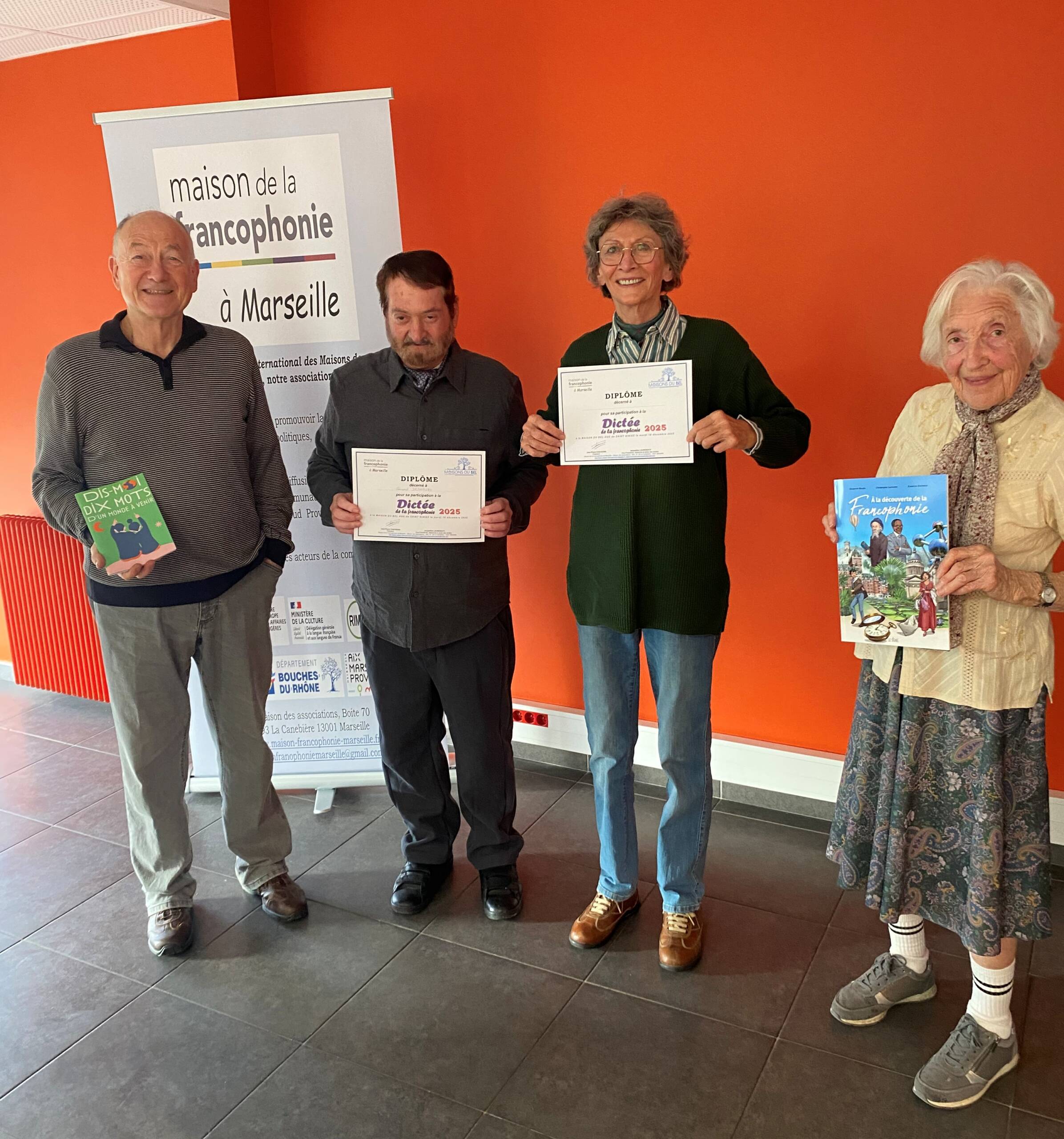 À l’automne 2025, les membres de la Maison de la francophonie à Marseille, Jaclyne et JPC en tête, ont organisé et réalisé la dictée de la francophonie pour les membres de 20 Maisons du Bel Âge (MBA) sur le thème « Dis-moi dix mots pour un monde à venir ». À l’issue de cette 3e édition des dictées dans les MBA des Bouches-du-Rhône (BDR), nous avons organisé en janvier 2026 une finale entre les seniors lauréats des 15 dictées réalisées au second semestre 2025 au sein du Conseil départemental des BDR.