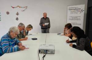 Merci à Mme Caroline GIAUME, adjointe à la culture du secteur pour son accueil et son intervention. Merci tout autant à Jaclyne et Jean-Pierre pour leur animation, avec la présentation de la Francophonie institutionnelle (OIF), notre association, son réseau international (RIMF) et l’opération « Dis-moi dix mots » du ministère de la Culture dans laquelle s’inscrit notre dictée de la Francophonie élaborée par Jaclyne.