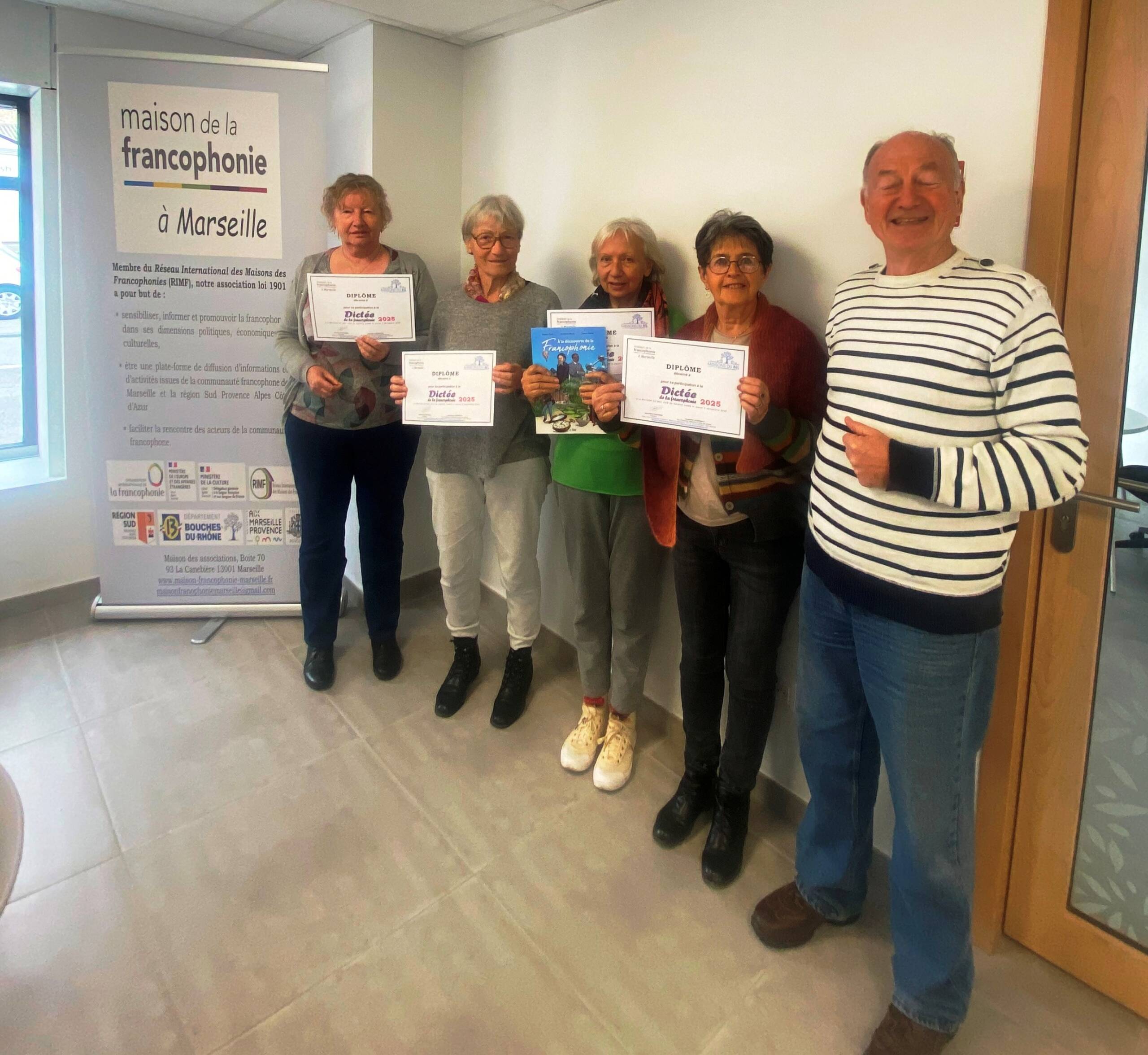 En 2025, les dictées de la francophonie MDFM ont commencé par la finale du concours des dictées réalisées en 2024 au sein de quinze Maisons du Bel Âge (MBA) à Marseille. Cette finale a clôturé le cycle de notre dictée de la francophonie dans les MBA qui avait commencé en novembre 2024, avec le soutien du Conseil départemental des Bouches-du-Rhône que nous remercions chaleureusement.
