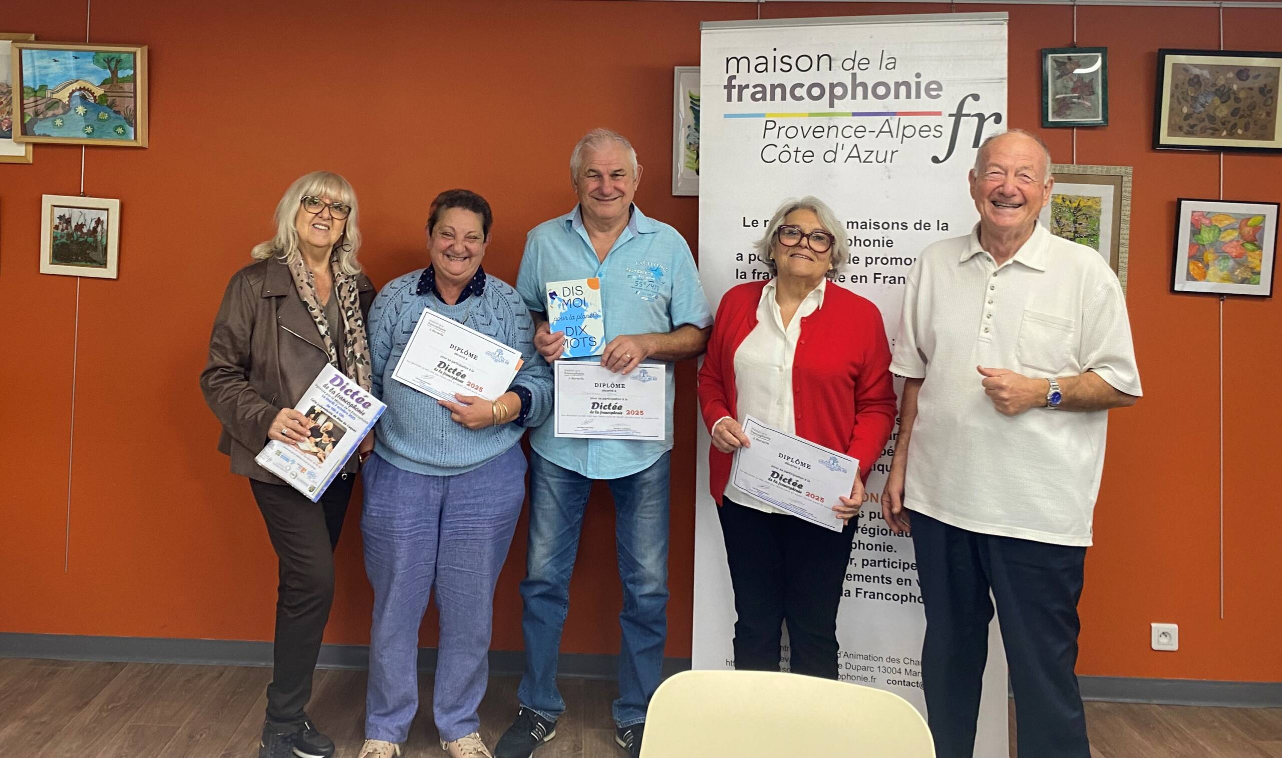 Au printemps, nous avons repris nos dictées auprès de nos partenaires : école, mairies, résidence séniors, MBA, etc. À noter également la dictée réalisée au sein de l’Hôtel de Région à Marseille, le 11 avril, à l’occasion de la Journée de la Francophonie du Conseil régional ainsi que le lancement d’un nouveau cycle de dictées au sein des MBA des Bouches-du-Rhône au second semestre 2025.
